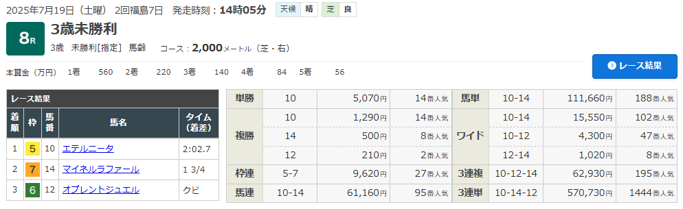 7/19 福島8R (3歳・未勝利クラス)(芝2000m)で的中!